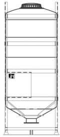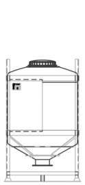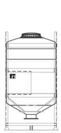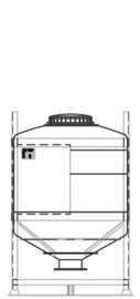 The DGC liner is rotationally moulded in natural UV stabilised linear medium density polyethylene. The polymer has strong resistance to industrial wear and tear. The conical base has a 90°cone angle which is designed to provide total discharge of the contents. The liner is supported and protected by a galvanised mild steel frame, providing excellent resistance to the elements. The base of the frame has integral four way fork truck entry.