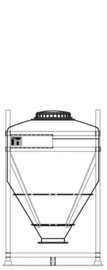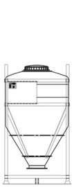The DGC liner is rotationally moulded in natural UV stabilised linear medium density polyethylene. The polymer has strong resistance to industrial wear and tear. The conical base has a 60°cone angle which is designed to provide total discharge of the contents. The liner is supported and protected by a galvanised mild steel frame, providing excellent resistance to the elements. The base of the frame has integral four way fork truck entry.