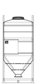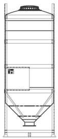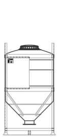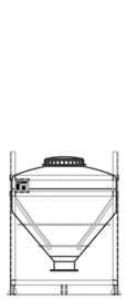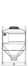 The DGC liner is rotationally moulded in natural UV stabilised linear medium density polyethylene. The polymer has strong resistance to industrial wear and tear. The conical base has a 90°cone angle which is designed to provide total discharge of the contents. The liner is supported and protected by a galvanised mild steel frame, providing excellent resistance to the elements. The base of the frame has integral four way fork truck entry.